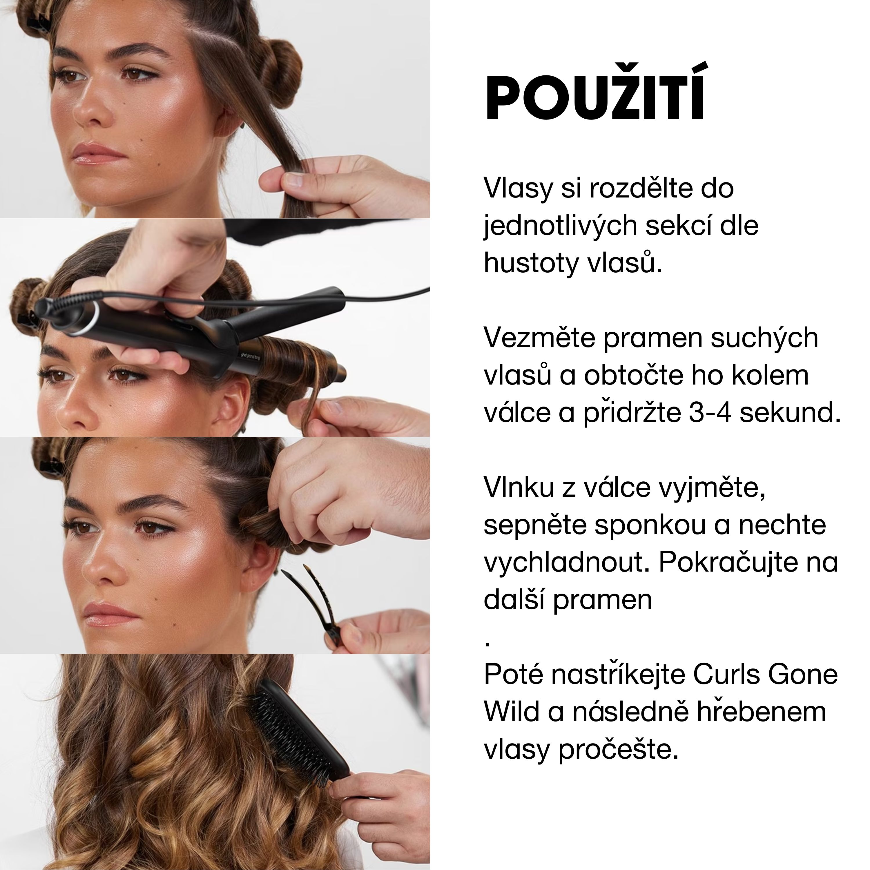 → Kulma je vybavena ergonomickým klipem, který vlasy bezpečně drží, což usnadňuje natáčení jednotných a definovaných loken od kořínků.