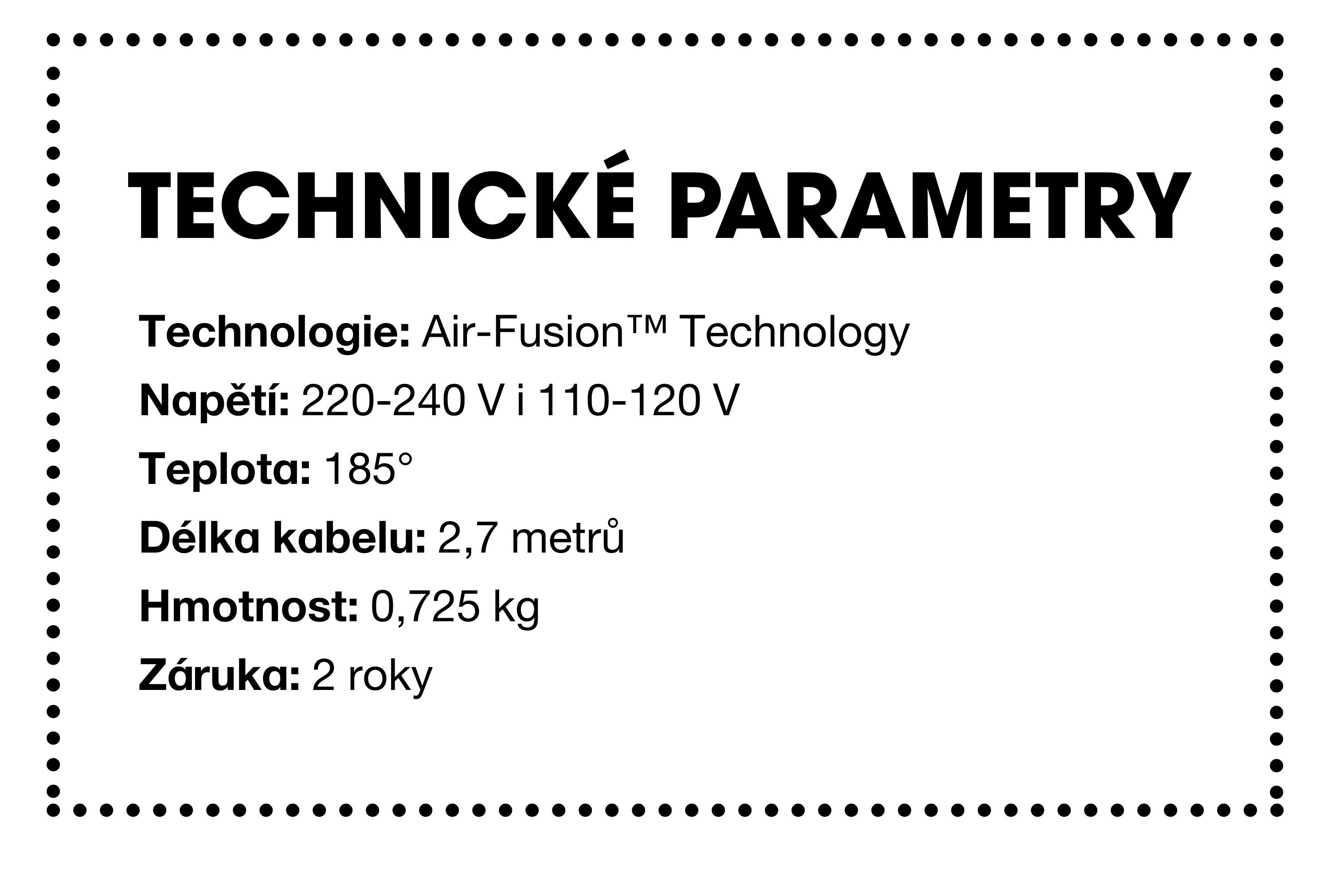 → Je navržen tak, aby šetřil energii oproti kombinovanému použití fénu a žehličky.