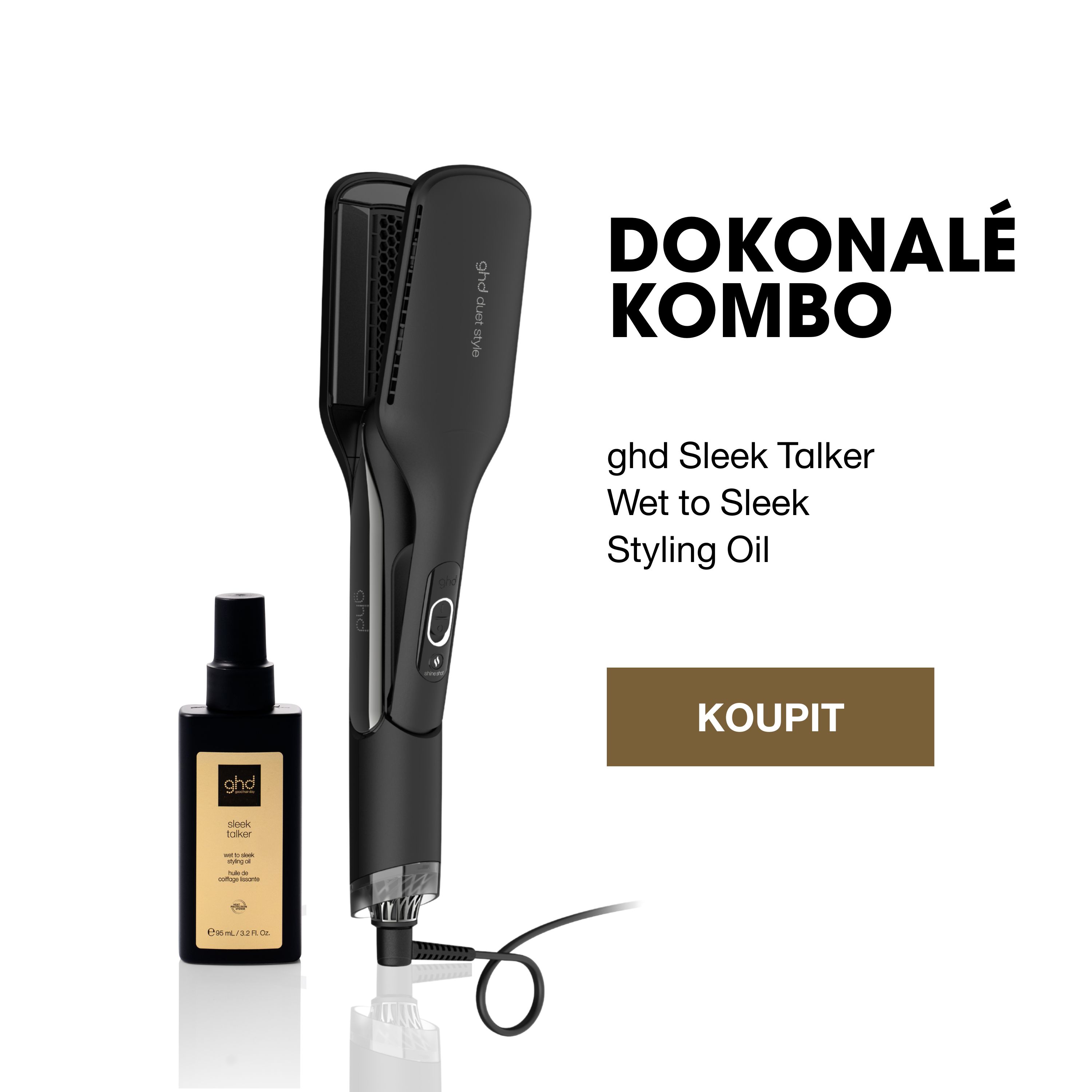ghd Duet Style je průlomový nástroj, který kombinuje sílu horkého vzduchu a teplotu stylingových desek v jednom přístroji. Byl navržen pro použití na mokré vlasy s cílem je vysušit a současně vyhladit a narovnat (nebo vytvarovat) do hedvábně hladkého, lesklého a dlouhotrvajícího účesu.