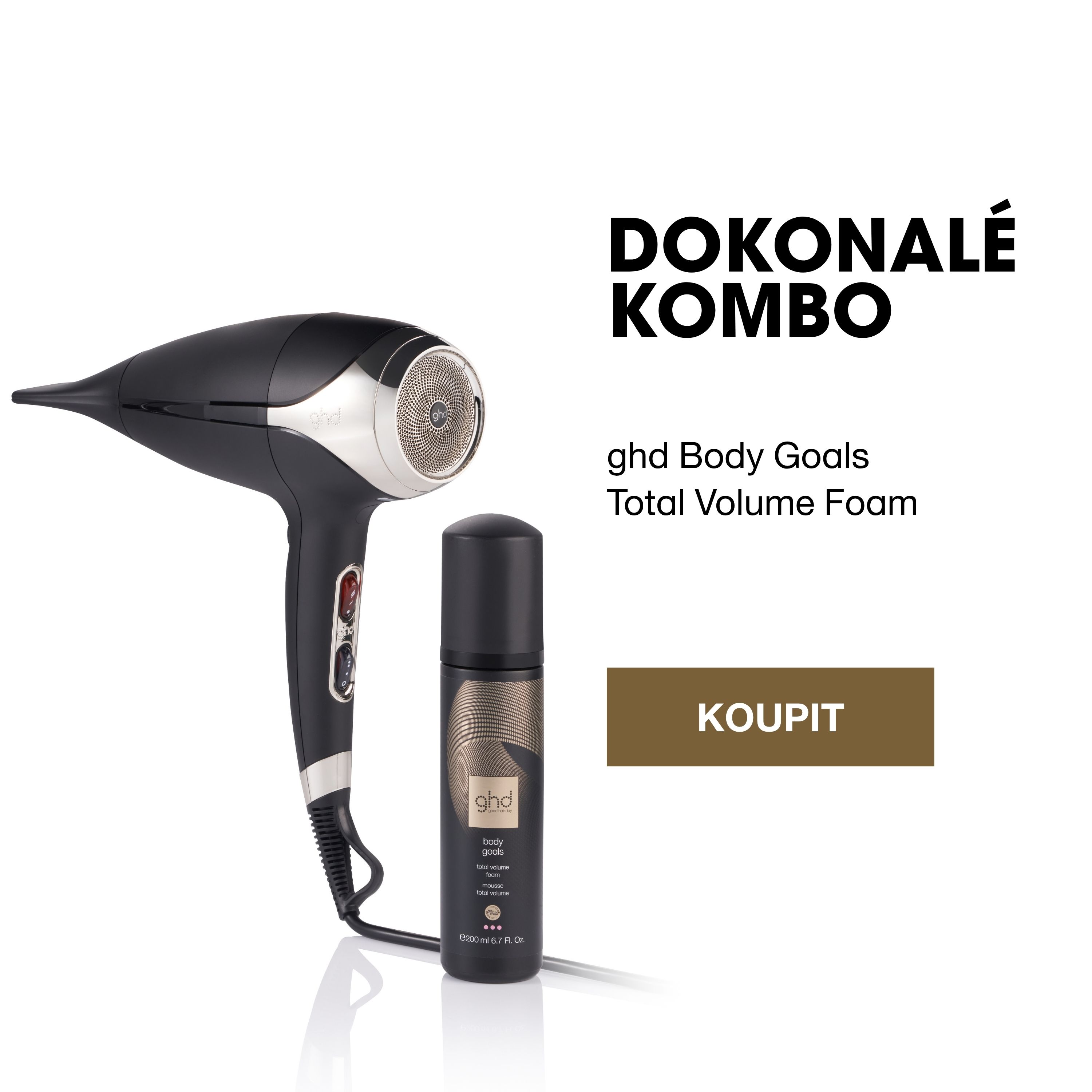 Špičkový profesionální fén na vlasy, vyvinutý ve spolupráci s inženýry, fyziky a předními stylisty ghd. Jeho design a technologie jsou zaměřeny na extrémní rychlost vysoušení, precizní styling a dosažení maximálního lesku bez krepatění. Jedná se o nejlehčí a nejrychlejší fén v produktové řadě ghd.