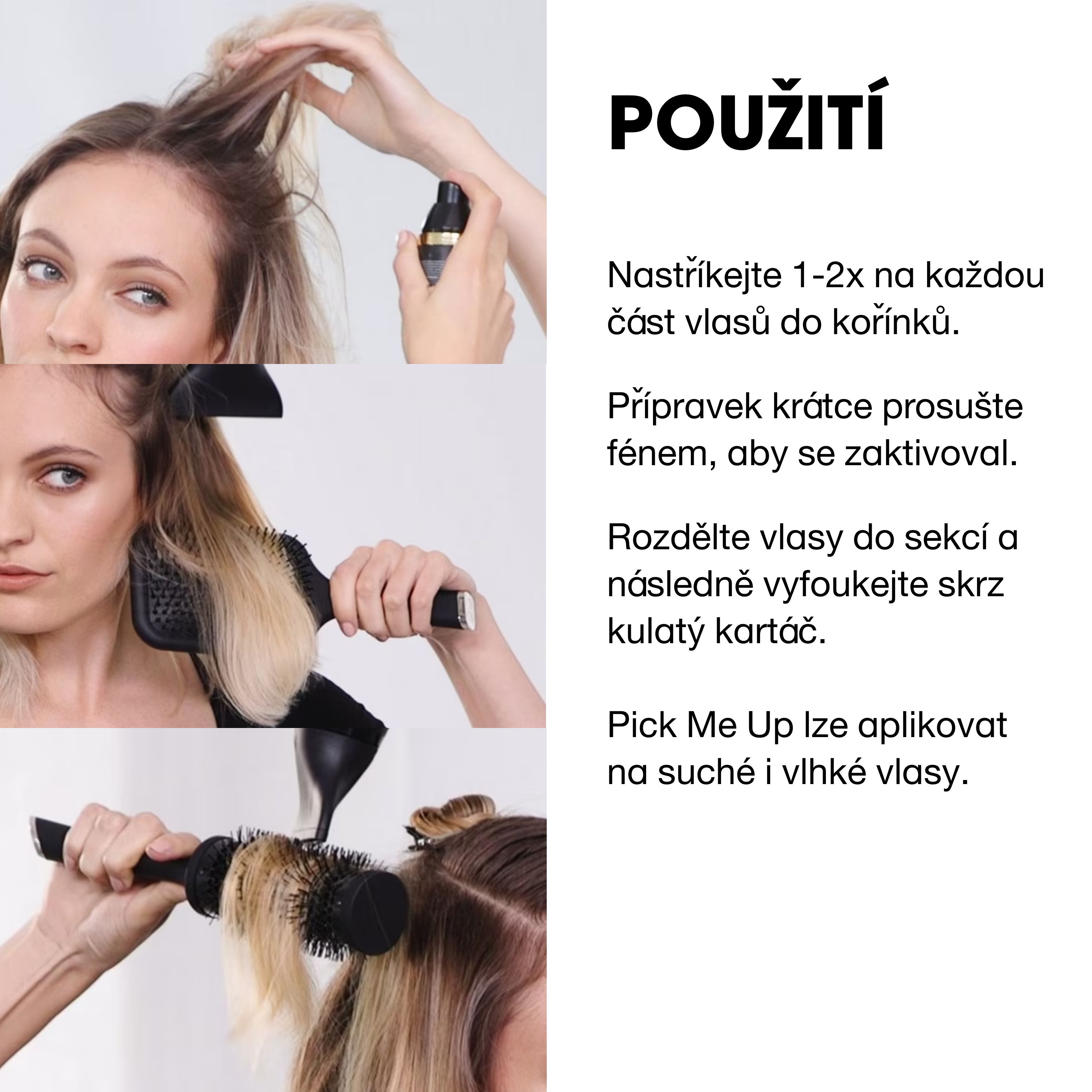 → Okamžité, silné pozvednutí u kořínků, které dodá vlasům plnější vzhled a dlouhotrvající objem po celý den.