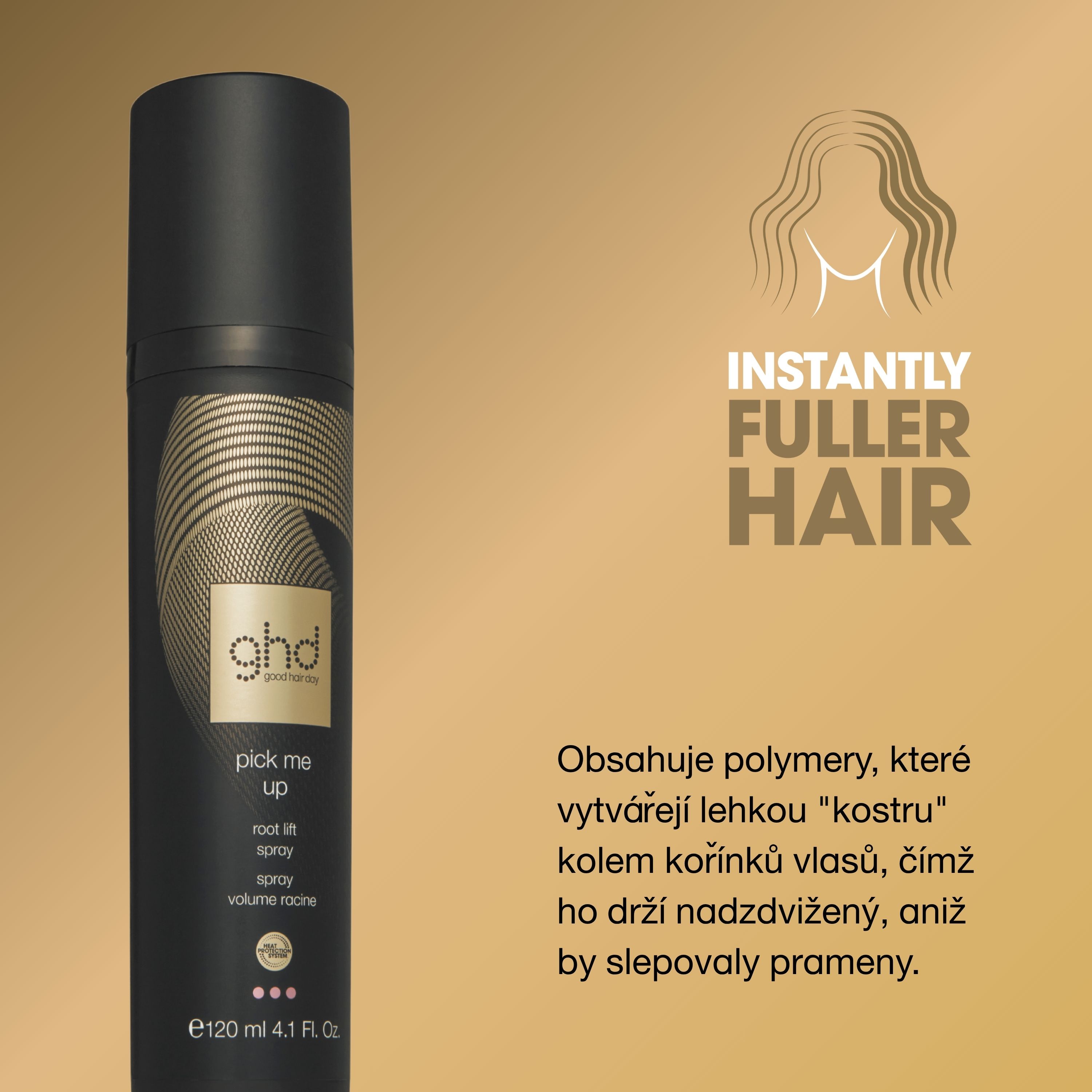 → Při použití s kulmofénem ghd Rise™ dodává vlasům klinicky prokázaný až 2,5násobný objem u kořínků. Slouží jako lešení, které vlasy zvedá a udržuje na místě.