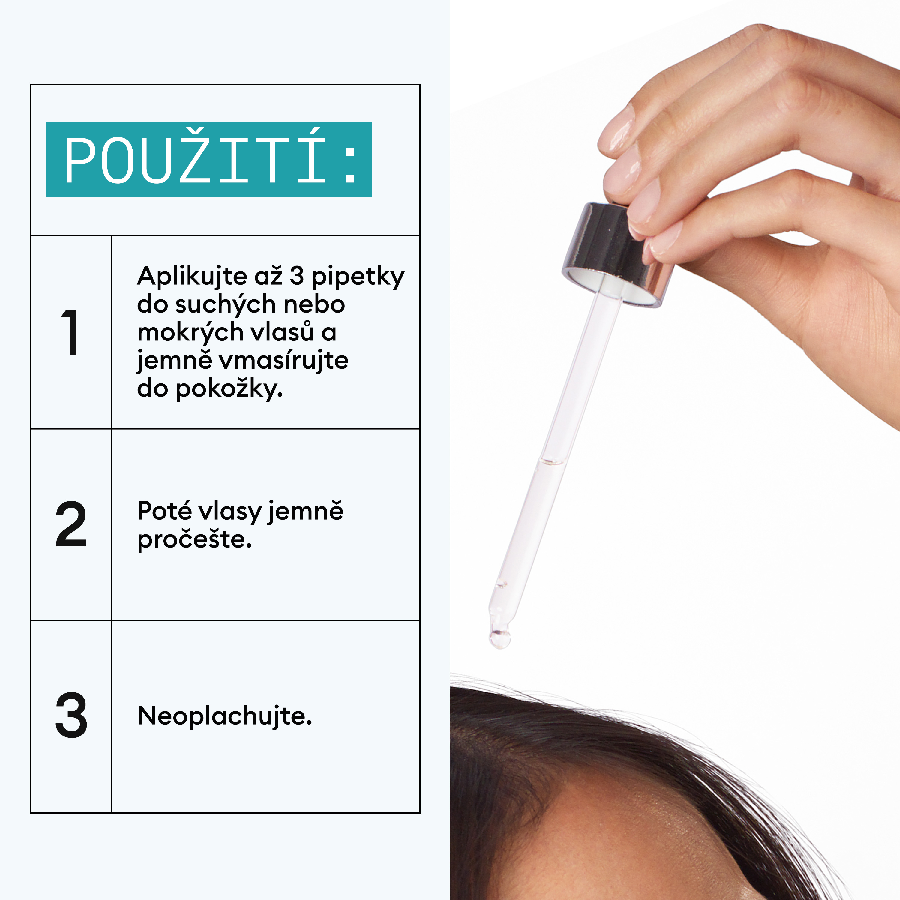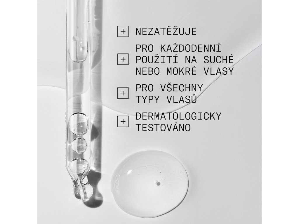 → Lehká nemastná textura okamžitě do hloubky proniká k vlasovým folikulům, aniž by vlasy zatěžovala nebo zmastila.