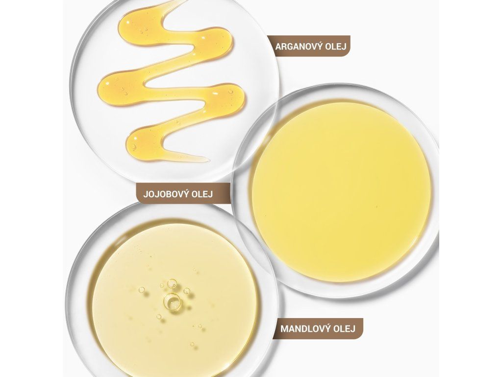 - Kombinace tří olejů – arganový, mandlový, jojobový
